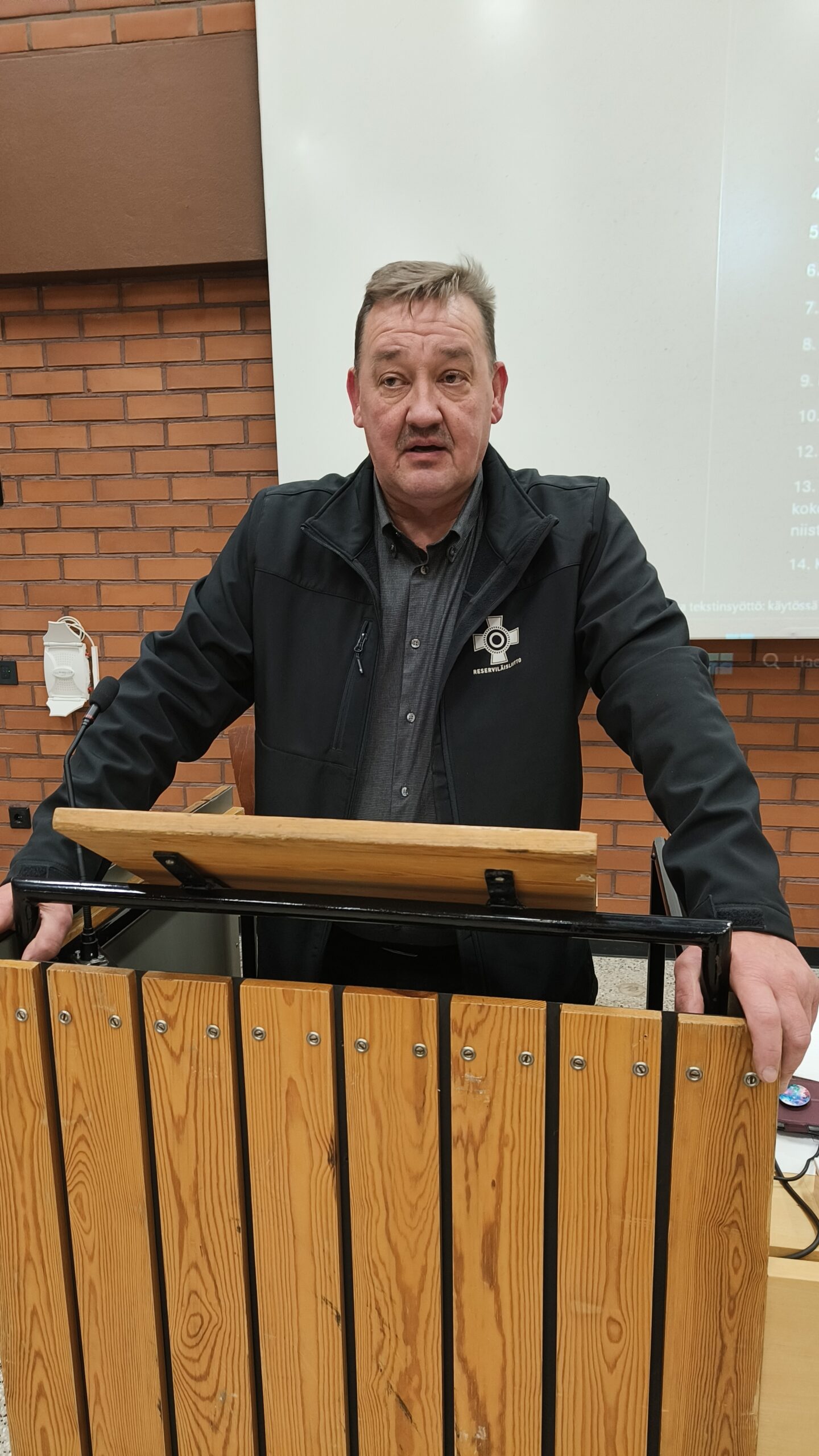 Reserviläisliiton puheenjohtaja Kari Salminen käytti myös puheenvuoron.