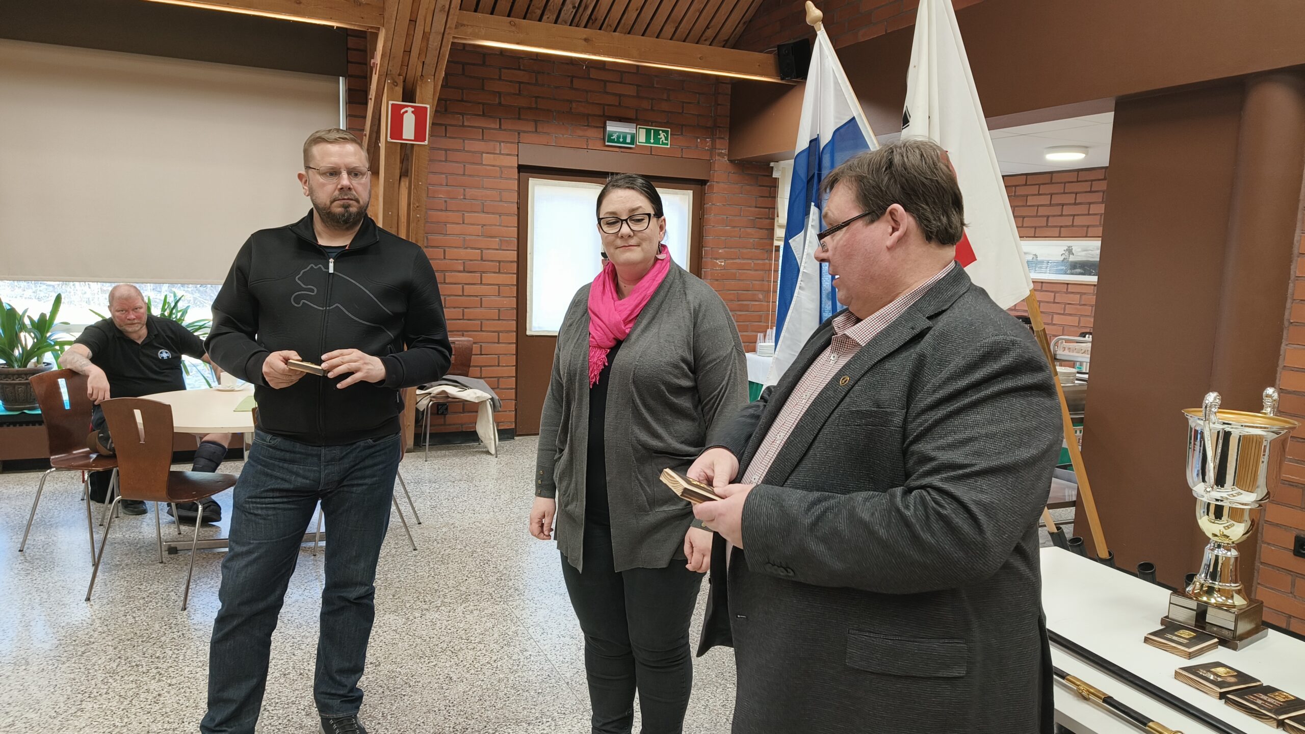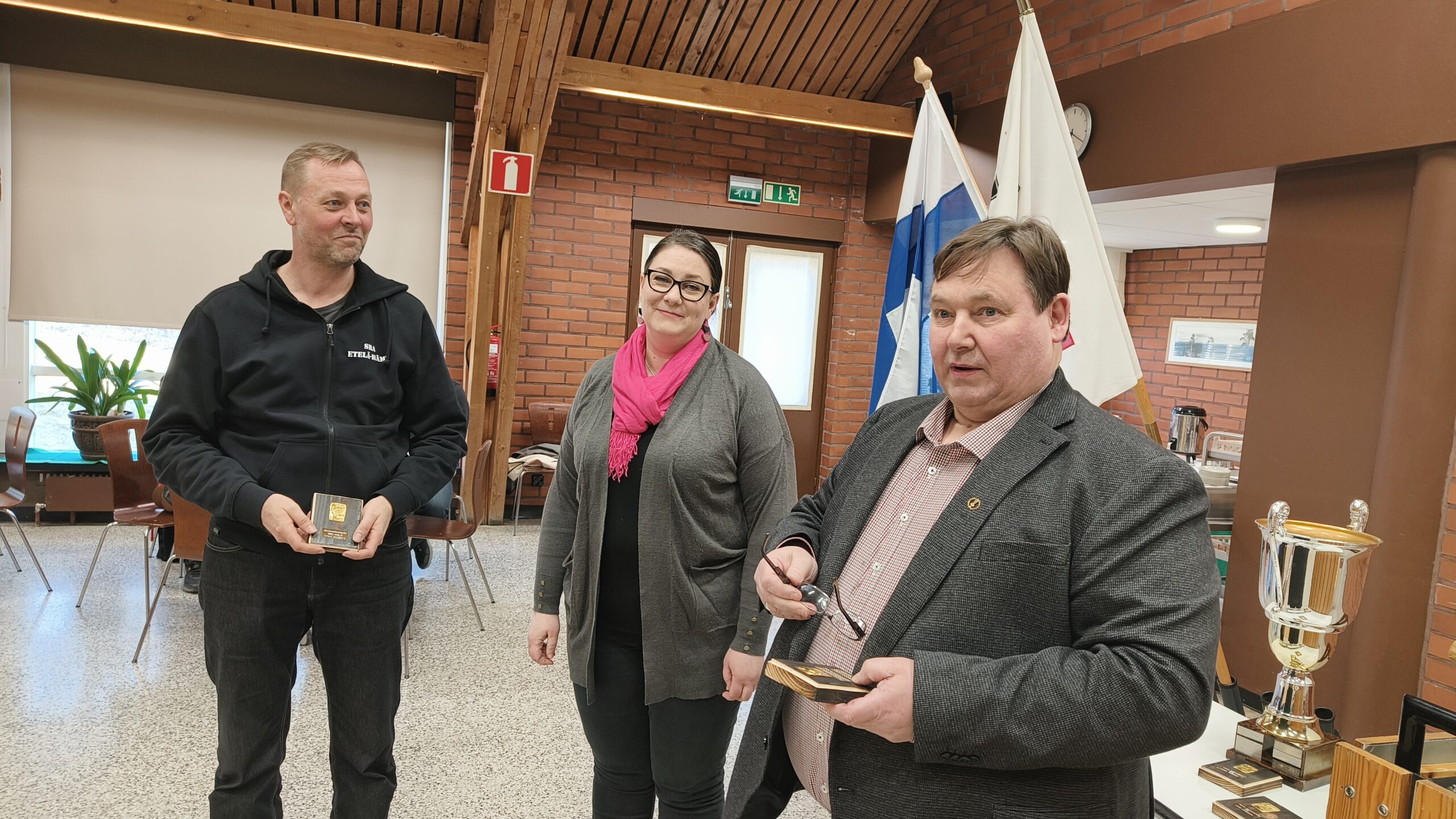 Antti Heikkinen vastaanotti kaksi miekkaa. Vuoden puheenjohtajan sekä jäsenhankintakilpailun voitto